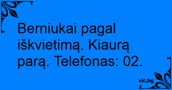Berniukai pagal iškvietimą. Kiaurą parą. Telefonas: 02.