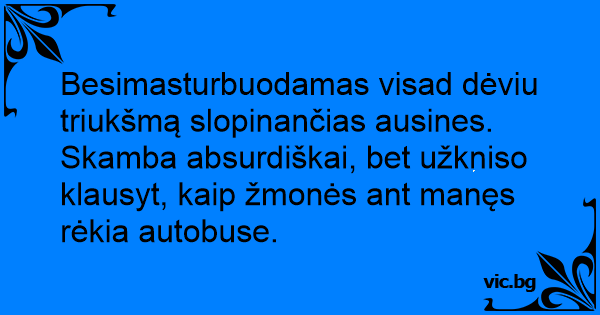 Besimasturbuodamas visad dėviu triukšmą slopinančias ausines. Skamba absurdiškai, bet užkniso klausyt, kaip žmonės ant manęs rėkia autobuse.