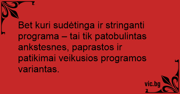 Bet kuri sudėtinga ir stringanti programa – tai tik patobulintas ankstesnes, paprastos ir patikimai veikusios programos variantas.