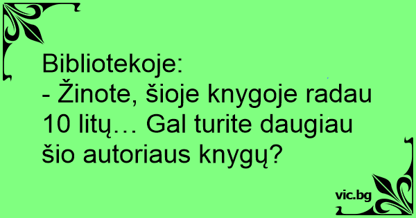 - Žinote, šioje knygoje radau 10 litų… Gal turite daugiau šio autoriaus knygų?