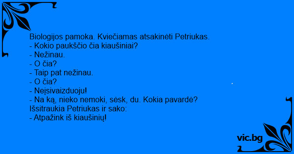 Biologijos pamoka. Kviečiamas atsakinėti Petriukas.