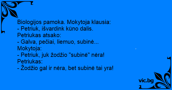 Biologijos pamoka. Mokytoja klausia: