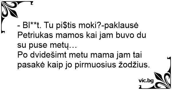 - Bl**t. Tu pi$tis moki?-paklausė Petriukas mamos kai jam buvo du su puse metų…