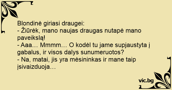 3. Blondinė giriasi draugei: -...