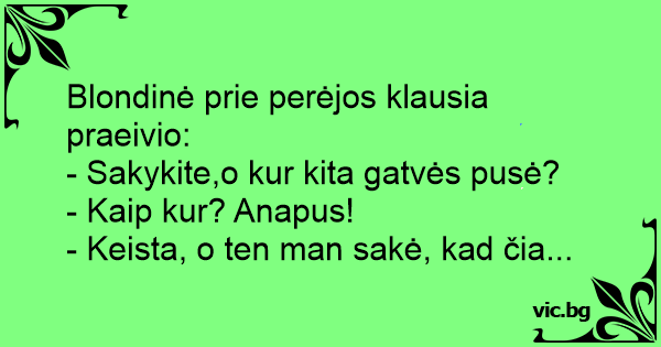 - Sakykite,o kur kita gatvės pusė?