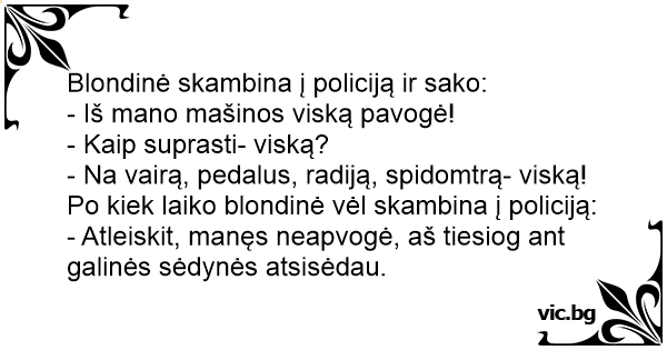 Blondinė skambina į policiją ir sako: