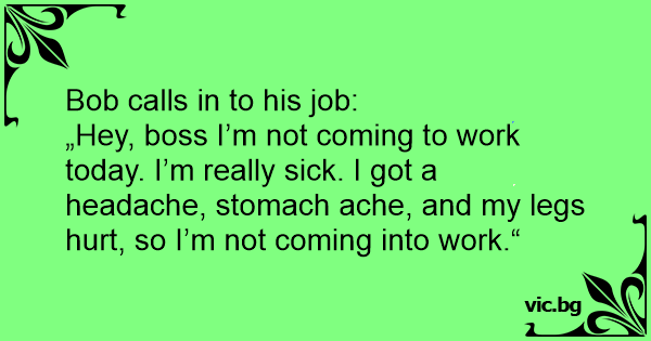 „Hey, boss I’m not coming to work today. I’m really sick. I got a headache, stomach ache, and my legs hurt, so I’m not coming into work.“