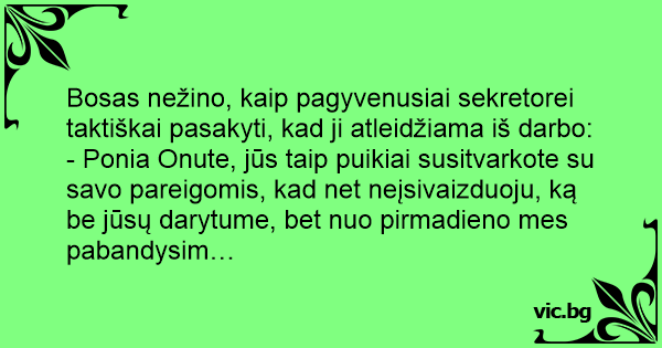 Bosas nežino, kaip pagyvenusiai sekretorei taktiškai pasakyti, kad ji atleidžiama iš darbo: