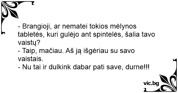 - Brangioji, ar nematei tokios mėlynos tabletės, kuri gulėjo ant spintelės, šalia tavo vaistų?
