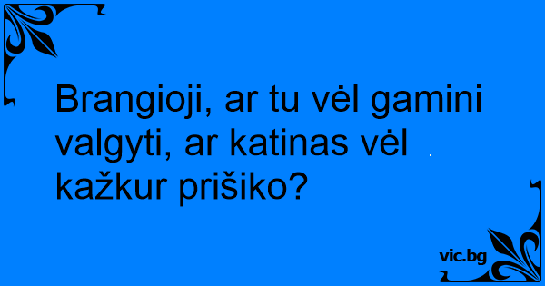 Brangioji, ar tu vėl gamini valgyti, ar katinas vėl kažkur prišiko?