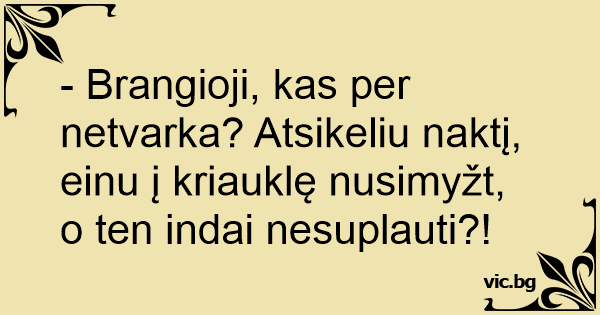 - Brangioji, kas per netvarka? Atsikeliu naktį, einu į kriauklę nusimyžt, o ten indai nesuplauti?!