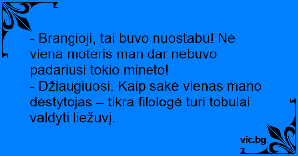 - Brangioji, tai buvo nuostabu! Nė viena moteris man dar nebuvo padariusi tokio mineto!