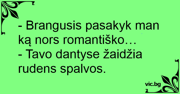 - Brangusis pasakyk man ką nors romantiško…