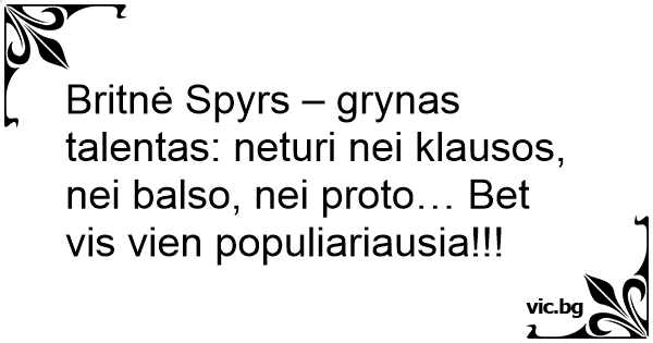Britnė Spyrs – grynas talentas: neturi nei klausos, nei balso, nei proto… Bet vis vien populiariausia!!!