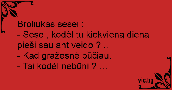 - Sese , kodėl tu kiekvieną dieną pieši sau ant veido ? ..