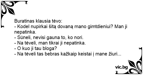 - Kodel nupirkai šitą dovaną mano gimtdieniui? Man ji nepatinka.