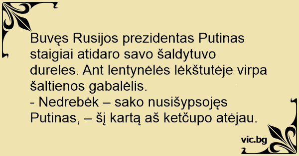 - Nedrebėk – sako nusišypsojęs Putinas, – šį kartą aš ketčupo atėjau.
