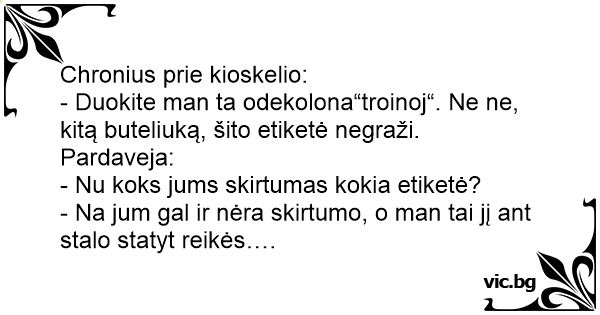 - Duokite man ta odekolona“troinoj“. Ne ne, kitą buteliuką, šito etiketė negraži.