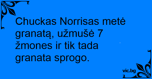 Chuckas Norrisas metė granatą, užmušė 7 žmones ir tik tada granata sprogo.