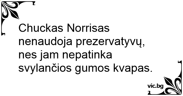 Chuckas Norrisas nenaudoja prezervatyvų, nes jam nepatinka svylančios gumos kvapas.