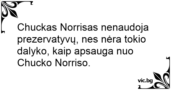 Chuckas Norrisas nenaudoja prezervatyvų, nes nėra tokio dalyko, kaip apsauga nuo Chucko Norriso.