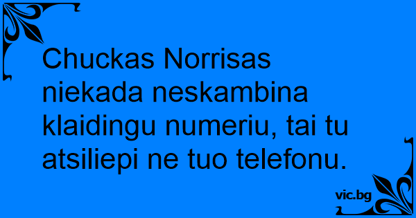Chuckas Norrisas niekada neskambina klaidingu numeriu, tai tu atsiliepi ne tuo telefonu.
