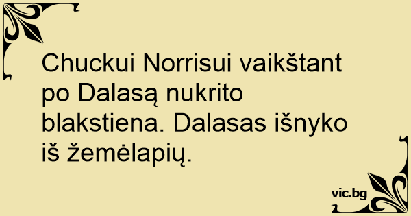 Chuckui Norrisui vaikštant po Dalasą nukrito blakstiena. Dalasas išnyko iš žemėlapių.