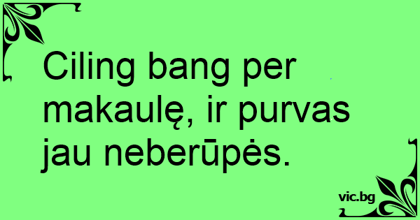 Ciling ваng per makaulę, ir purvas jau neberūpės.