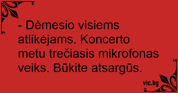 - Dėmesio visiems atlikėjams. Koncerto metu trečiasis mikrofonas veiks. Būkite atsargūs.