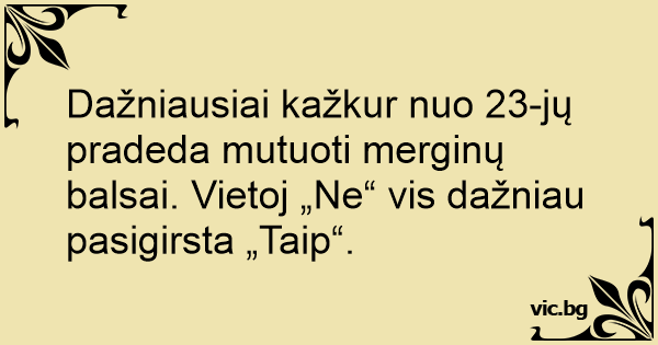 Dažniausiai kažkur nuo 23-jų pradeda mutuoti merginų balsai. Vietoj „Ne“ vis dažniau pasigirsta „Taip“.