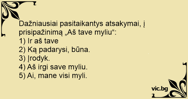 Dažniausiai pasitaikantys atsakymai, į prisipažinimą „Aš tave myliu“: