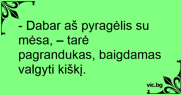 - Dabar aš pyragėlis su mėsa, – tarė pagrandukas, baigdamas valgyti kiškį.