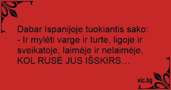 - Ir mylėti varge ir turte, ligoje ir sveikatoje, laimėje ir nelaimėje, KOL RUSĖ JUS IŠSKIRS…