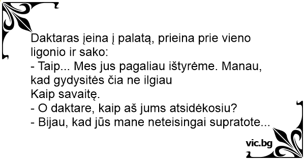 - Taip... Mes jus pagaliau ištyrėme. Manau, kad gydysitės čia ne ilgiau