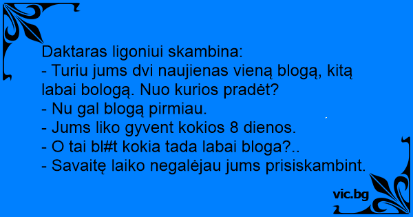 - Turiu jums dvi naujienas vieną blogą, kitą labai bologą. Nuo kurios pradėt?