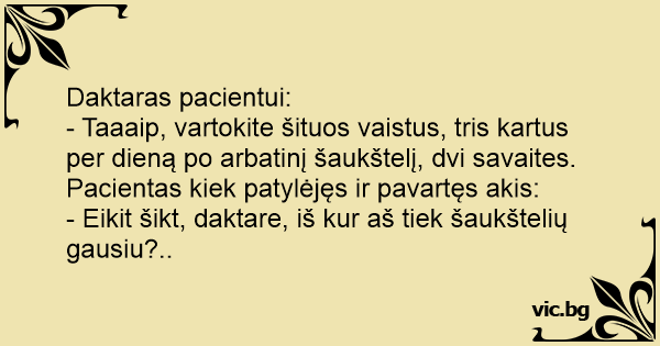 - Eikit šikt, daktare, iš kur aš tiek šaukštelių gausiu?..