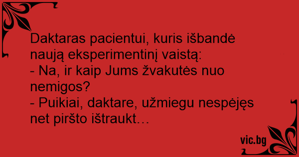 - Puikiai, daktare, užmiegu nespėjęs net piršto ištraukt…