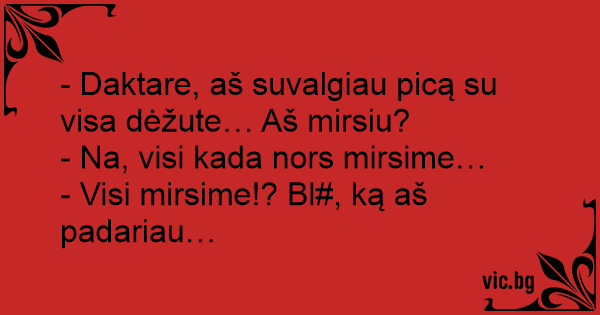 - Daktare, aš suvalgiau picą su visa dėžute… Aš mirsiu?