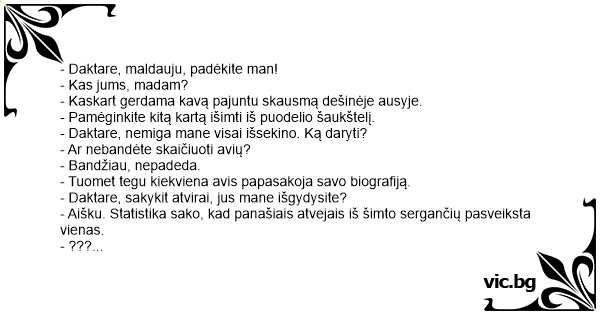 - Daktare, sakykit atvirai, jus mane išgydysite?