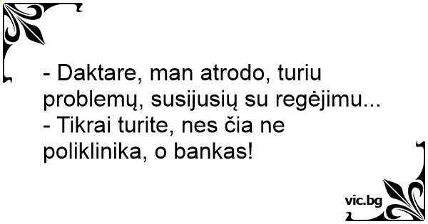 - Tikrai turite, nes čia ne poliklinika, o bankas!