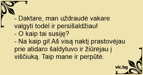 - Daktare, man uždraudė vakare valgyti todėl ir persišaldžiau!