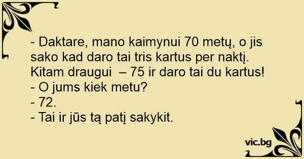 - Daktare, mano kaimynui 70 metų, o jis sako kad daro tai tris kartus per naktį. Kitam draugui – 75 ir daro tai du kartus!