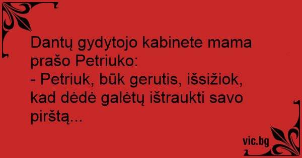 - Petriuk, būk gerutis, išsižiok, kad dėdė galėtų ištraukti savo pirštą...
