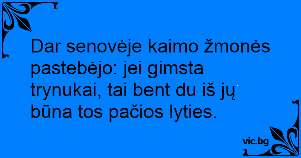 Dar senovėje kaimo žmonės pastebėjo: jei gimsta trynukai, tai веnт du iš jų būna tos pačios lyties.