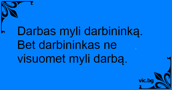Darbas myli darbininką. Bet darbininkas ne visuomet myli darbą.
