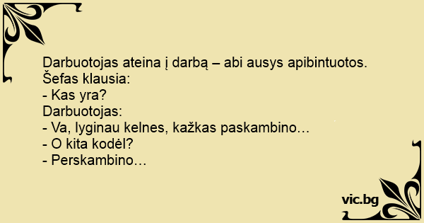 Darbuotojas ateina į darbą – abi ausys apibintuotos.