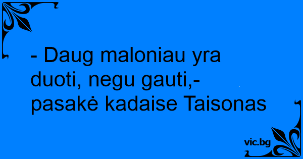 - Daug maloniau yra duoti, negu gauti,- pasakė kadaise Taisonas
