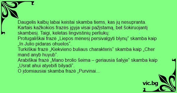 Daugelis kalbų labai keistai skamba tiems, kas jų nesupranta. Kartais kažkokios frazės įgyja visai pažįstamą, bet šokiruojantį skambesį. Taigi, keletas lingvistinių perliukų:
