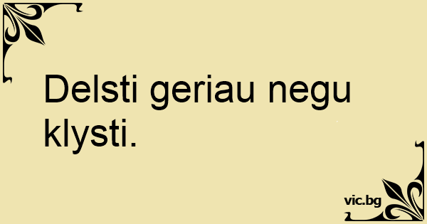 Delsti geriau negu klysti.