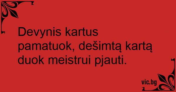 Devynis kartus pamatuok, dešimtą kartą duok meistrui pjauti.